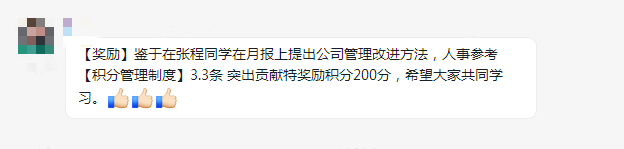 突出貢獻(xiàn):對(duì)公司提出合理建議或者做出突出貢獻(xiàn)的根據(jù)情況獎(jiǎng)勵(lì)200-300積分