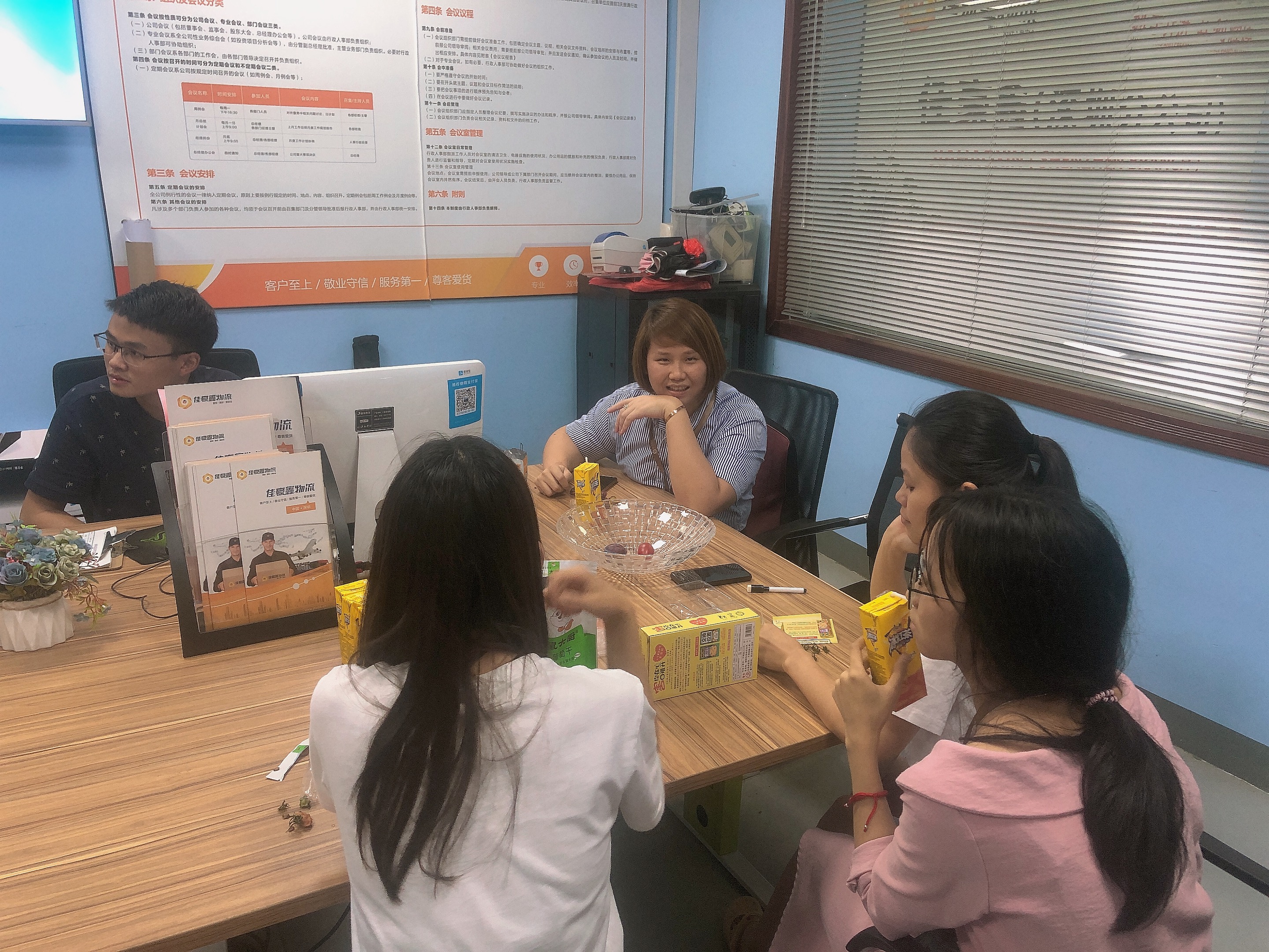 處理好手中的工作,漸漸匯聚在會議室里,對桌上的水果進(jìn)行輸出。